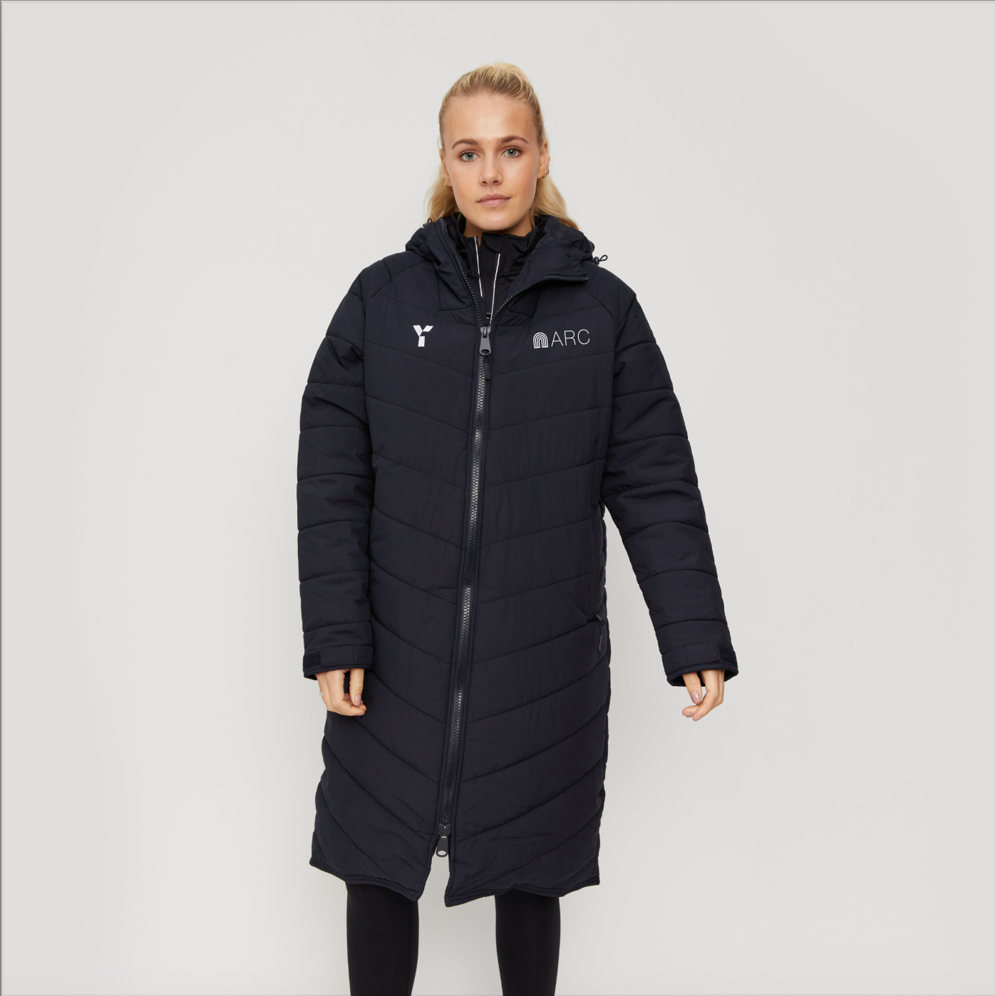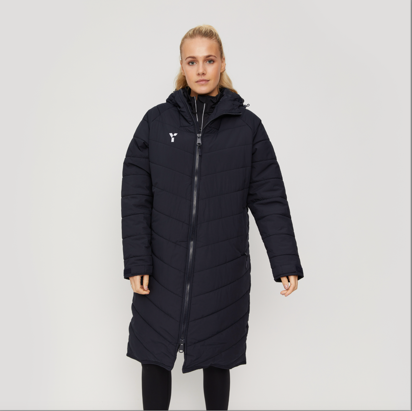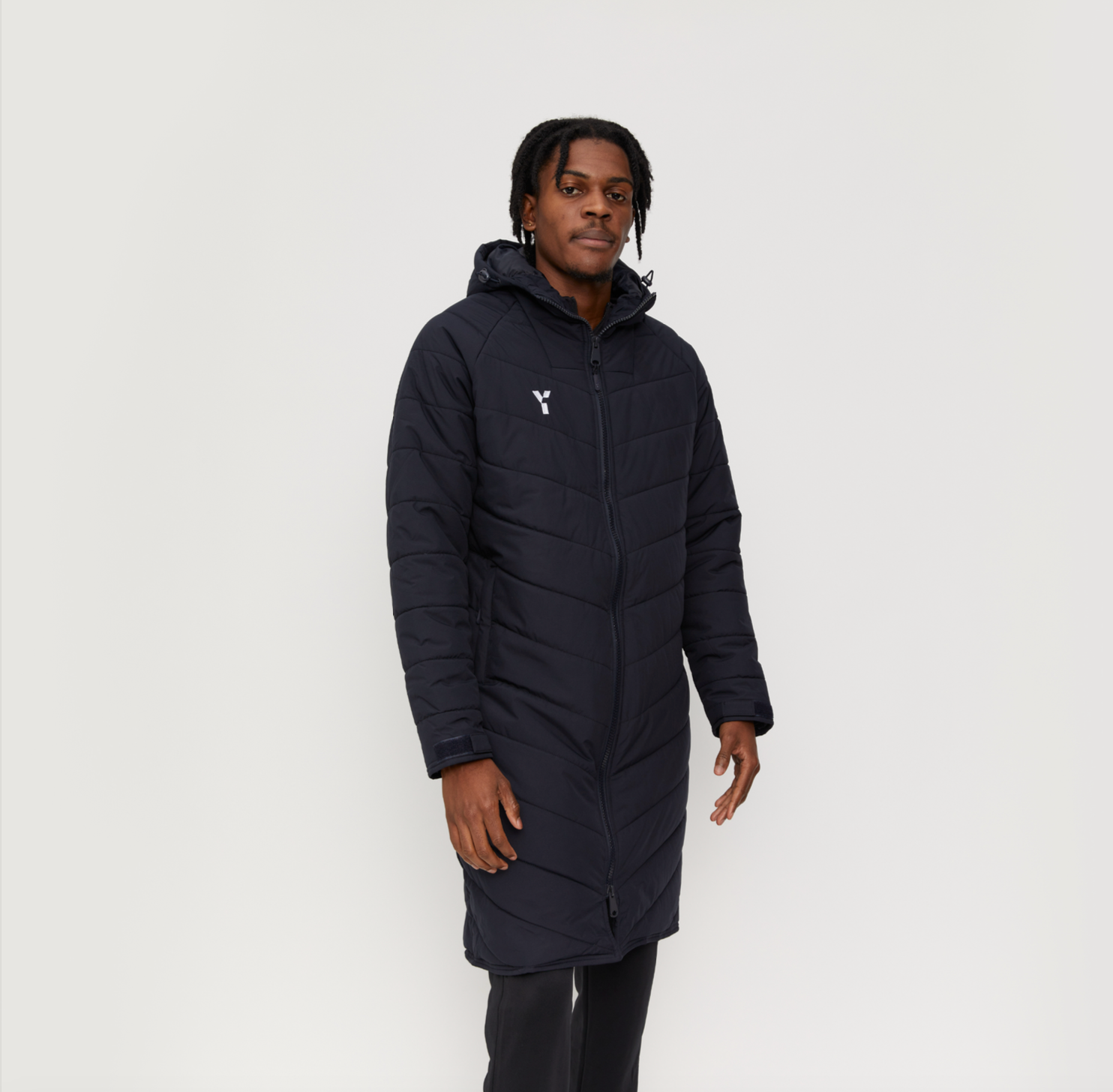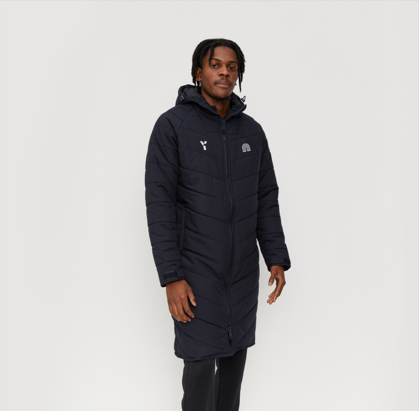 Official Y1 Bench Jacket. Crafted from 100% recycled PEC polyester material, the Bench Jacket is engineered with adjustable cuffs allowing for tailored sleeve lengths as well as fleece lined pockets and a warm hood. This jacket is designed to maximise warmth, comfort & performance whilst honouring our commitment to sustainability, it is a unisex and oversized fit.